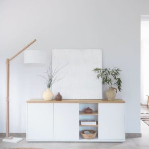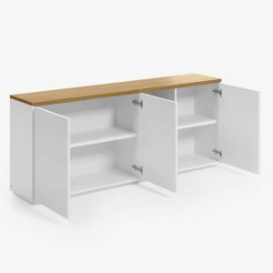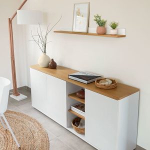 • Aparador 180 x 75 cm con sobre de chapa de roble y puertas lacadas en blanco.