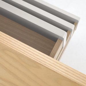 · Materiales: 68% Tablero de partículas E0, 20% Madera de fresno (Fraxinus Excelsior), 12% Chapa de fresno (Fraxinus spp.)