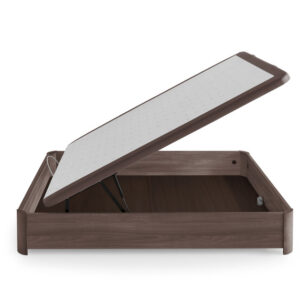 El canapé abatible Bikkat 2.0 Patas se caracteriza por su diseño y texturas de madera natural. Disponible en acabados de color Wengué, Caledonian y Blanco. Con tapa texturizada de esquinas redondas tapizadas a tres platabandas, donde el tapizado 3D central favorece la transpirabilidad. Gran capacidad interior.