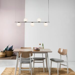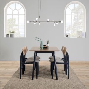 • Madera maciza de Hevea en sillas y estructura de la mesa.