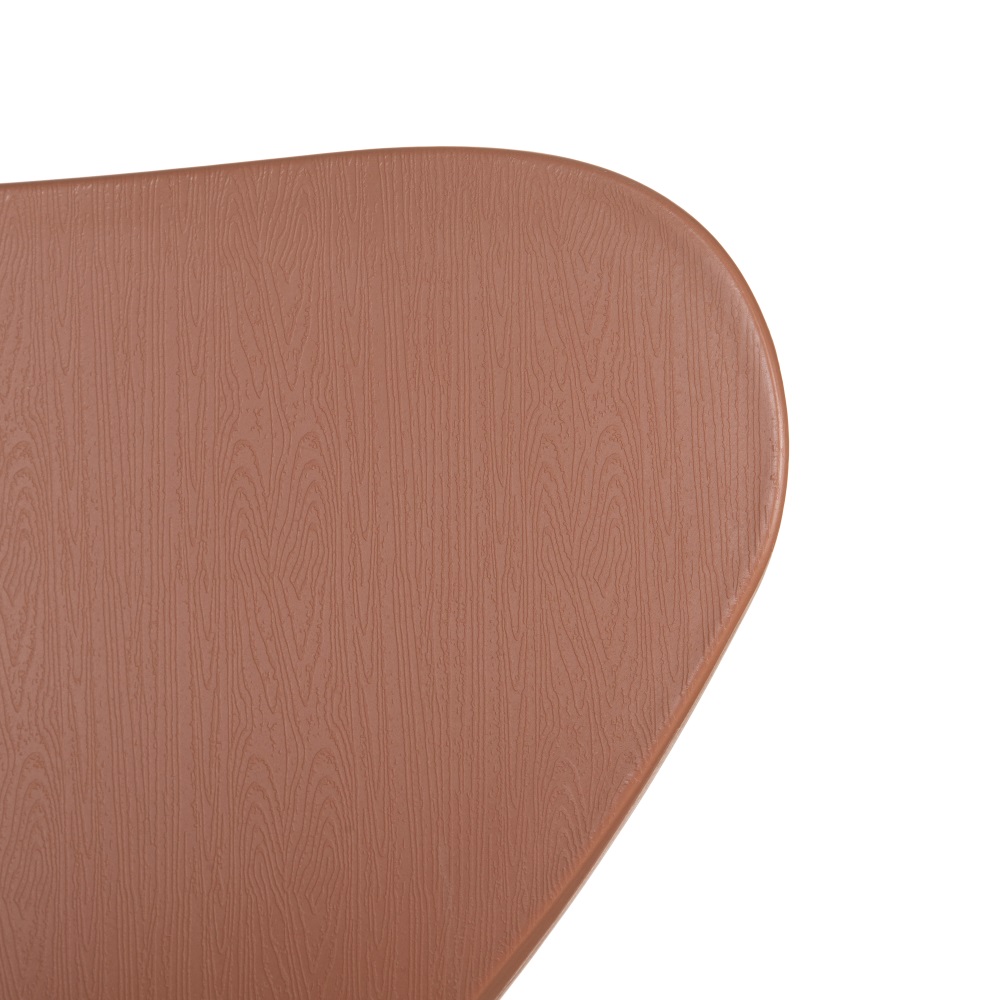 Silla económica de diseño con carcasa de polipropileno y patas metálicas de color marrón.
