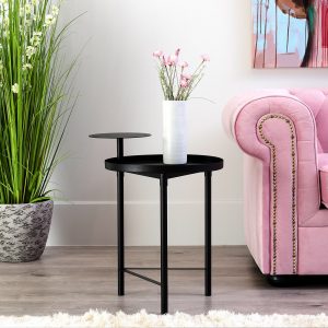Mesa auxiliar de diseño industrial, ideal para darte servicio junto al brazo de tu sofá. Podrías incluso colocarla como mesita de noche en el dormitorio.