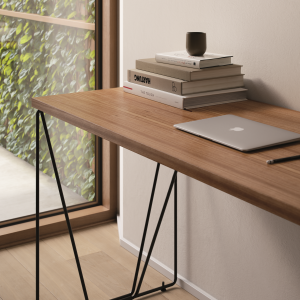 Mesa de apariencia ligera para el teletrabajo pero que por sus componentes es una de las más robustas y estables del mercado.