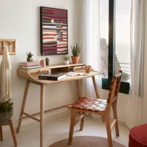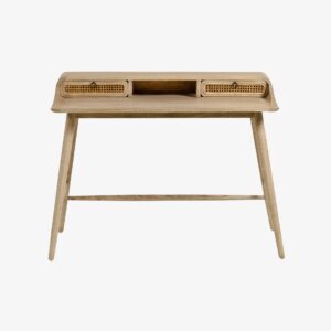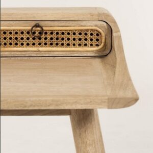 El escritorio Nalu es de madera maciza de mindi con efecto envejecido.