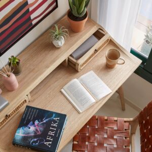 • Para darle un toque de tendencia, el frontal es de ratán trenzado a mano.