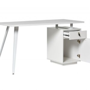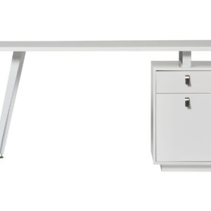 Es uno de los más versátiles gracia a su diseño, podrás utilizarlo tanto en oficina, como en tu habitación o despacho. Se compone de un tablero en dm lacado y unas patas en metal con el mismo acabado, a esto, se une una cajonera de almacenaje con tiradores de cuero con costuras, para que no dejes nada fuera y tengas todo organizado.
