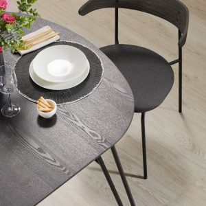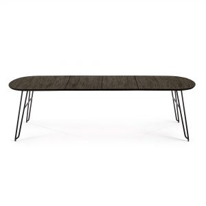 Mesa extensible con sobre de madera maciza acabado con chapa natural de fresno en color ceniza. Los pies son de acero pintados en mate. Cuenta con varias extensiones independientes para que puedas tener varias opciones de medidas.
