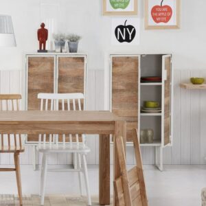 Mesa extensible con sobre y pies de roble macizo en acabado natural. Cuenta con dos extensiones independientes para que puedas tener 3 opciones de medidas.