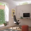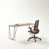 La estructura metálica de varilla fina de acero  de esta mesa, le confiere una apariencia ligera y liviana que dota de elegancia la estancia del hogar dedicada al teletrabajo.