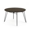 Mesa redonda con tapa redonda de 120 cm fabricada con MDF lacado en blanco mate. Pies de madera maciza de roble.