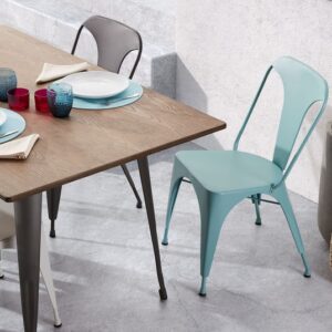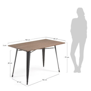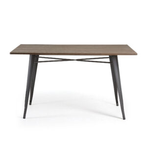 Mesa de estilo industrial. Sobre de madera maciza de bambú y estructura fabricada con acero pintado en color antracita.