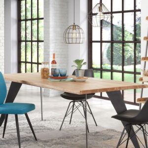 Mesa con sobre rectangular 180×100 cm de madera maciza de roble natural