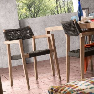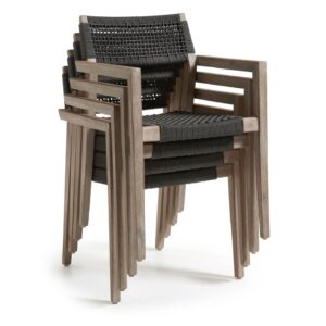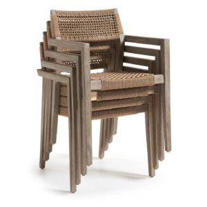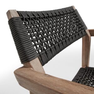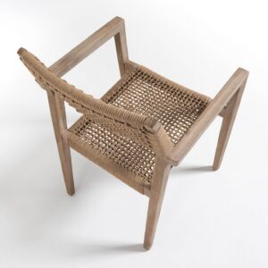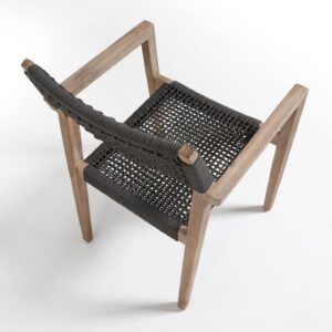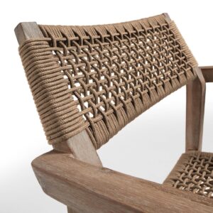 • Asiento y respaldo de cuerda poliester de color beige o gris oscuro resistente a los rayos UV.