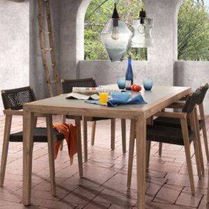 • La silla Ecucal está fabricada con madera maciza de eucalipto con un acabado de pátina blanca resistente también a los rayos UV.