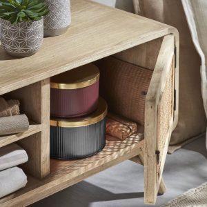· Materiales: 60% Madera de mindi (Melia azedarach), 20% Contrachapado, 10% Chapa de mindi (Melia azedarach), 10% Ratán
