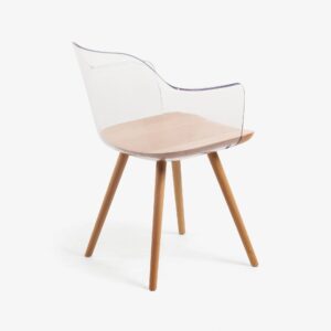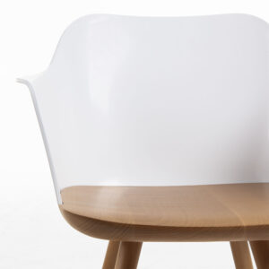 • Respaldo con una moderna figura curvada con reposabrazos de polipropileno lacado de color blanco o de policarbonato transparente