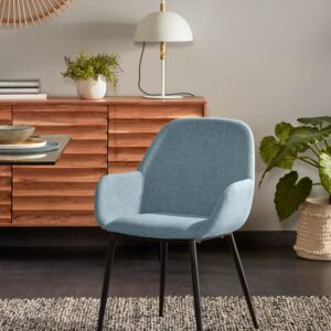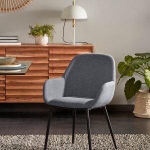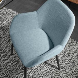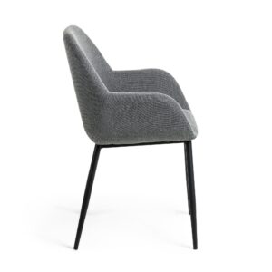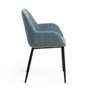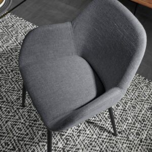 Silla confortable con estructura de acero pintado en negro y tapizada con un tejido resistente.
