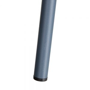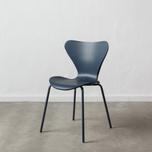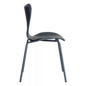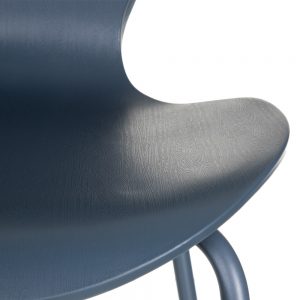Silla económica de diseño con carcasa de polipropileno y patas metálicas de color azul.