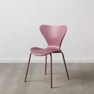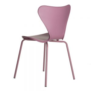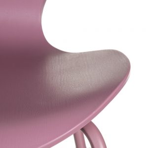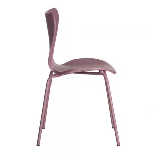 Silla económica de diseño con carcasa de polipropileno y patas metálicas de color morado.