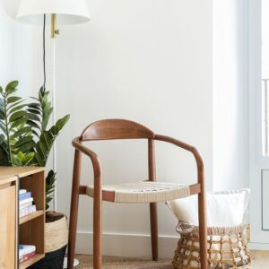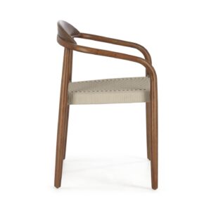 • La estructura de madera maciza de eucalipto se laca con cuatro capas en color nogal para dotarla de mayor durabilidad y es tratada para protegerla de los rayos UV, al igual que la cuerda del asiento.