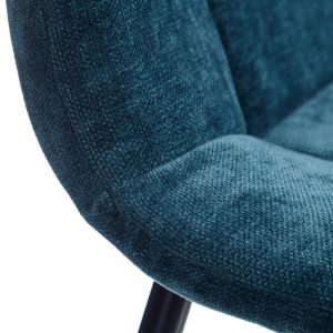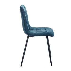 Silla de estilo contemporáneo tapizada en color marrón con las matas de metal negro.
