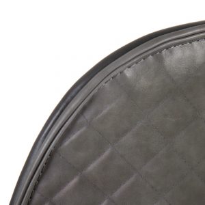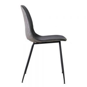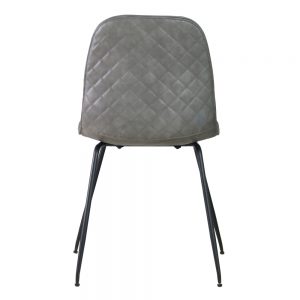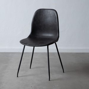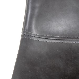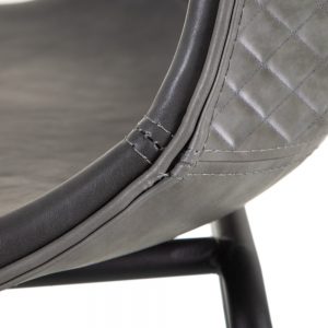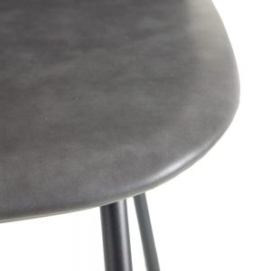 Silla de estilo industrial y tapizada en símil piel gris. La estructura metálica de las patas está pintada en negro.