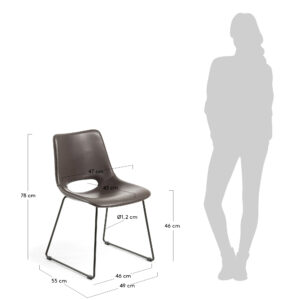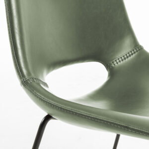 Silla tapizada en piel sintética. Pies en acero pintado por pulverización.