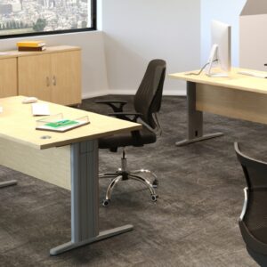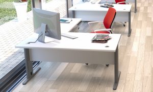 Mesa operativa con un estilo clásico aunque sin renunciar a las formas del mobiliario actual.