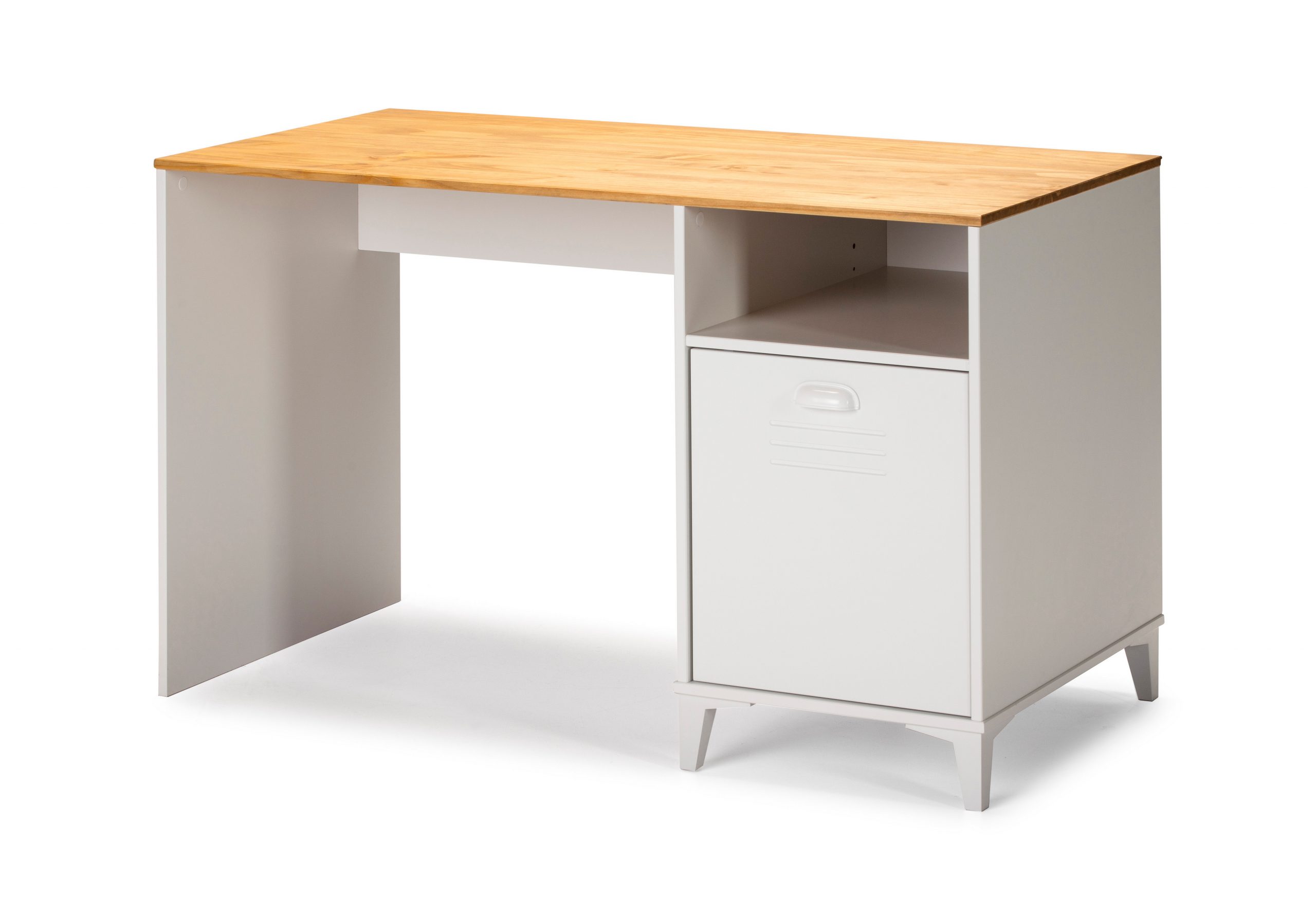 Mesa de estudio o escritorio  con hueco y puerta batiente lateral de gran capacidad.