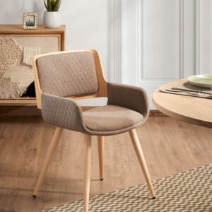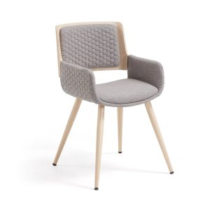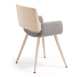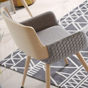 • Silla de comedor fabricada en madera de roble curvada con asiento y respaldo tapizado en gris oscuro