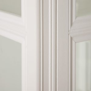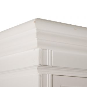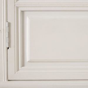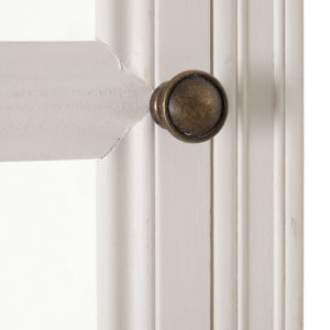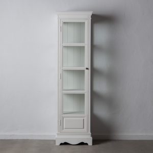 Vitrina pequeña de estilo vintage con una puerta. Madera maciza de paulonia y acabado envejecido en blanco.